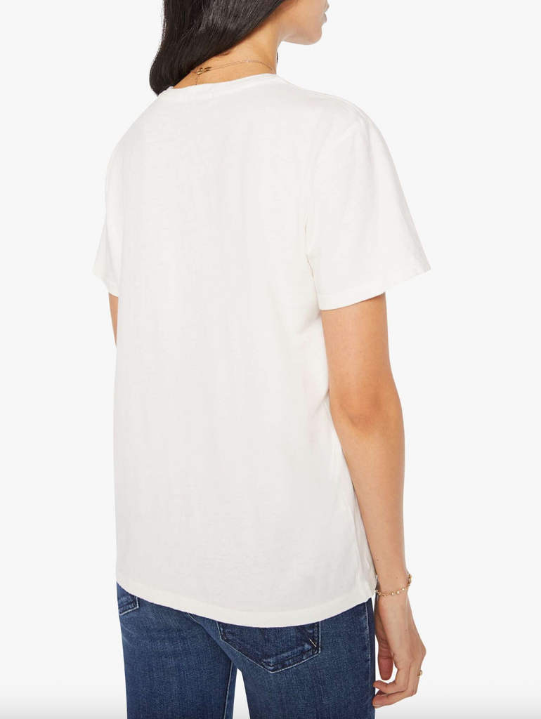 Garden of good and evil. A crewneck tee with an oversized fit and a clean hem. Made from 100% cotton, the white tee features a fountain graphic with text and floral details on the front.