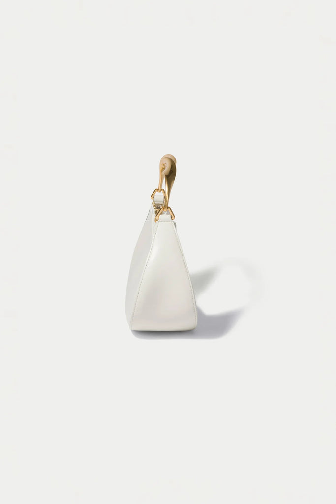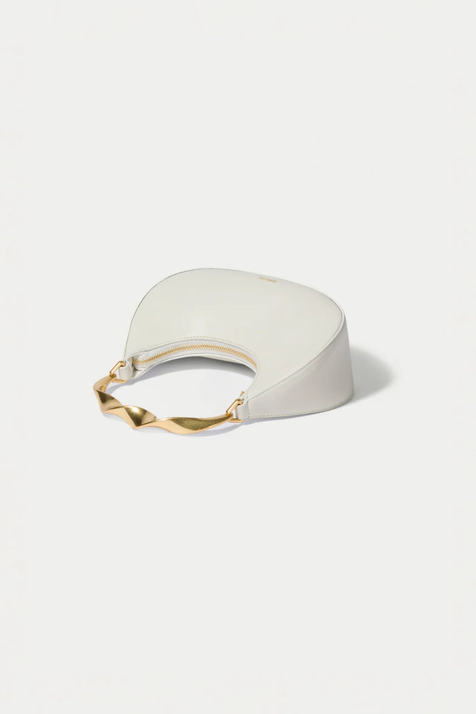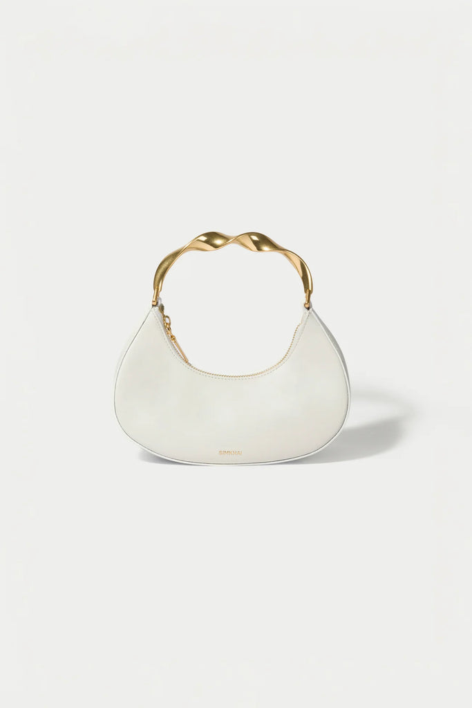 The Nixi Hobo Bag in Ivory. Showcasing a twisted handle atop a seamless, rounded silhouette, this handbag marries art with utility, creating an accessory that complements both casual and sophisticated styles.