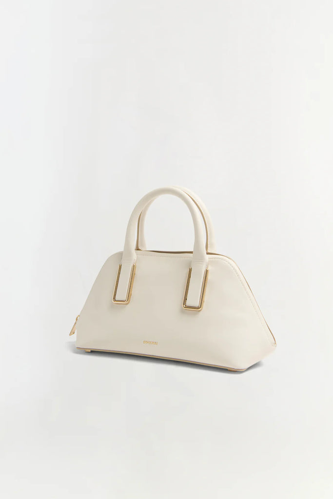 The Wynn Small Leather Top Handle Bag in Alabaster