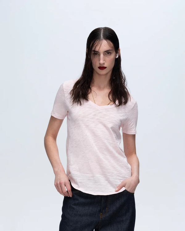 • Effortless Travel Style: A soft tee, knit cardigan and relaxed trousers from the ATM collection make for a travel outfit that’s stylish and comfortable.