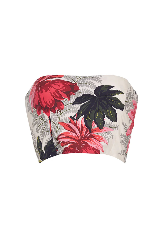 • Strapless bustier top featuring a cropped silhouette, sweetheart neckline and boned bodice