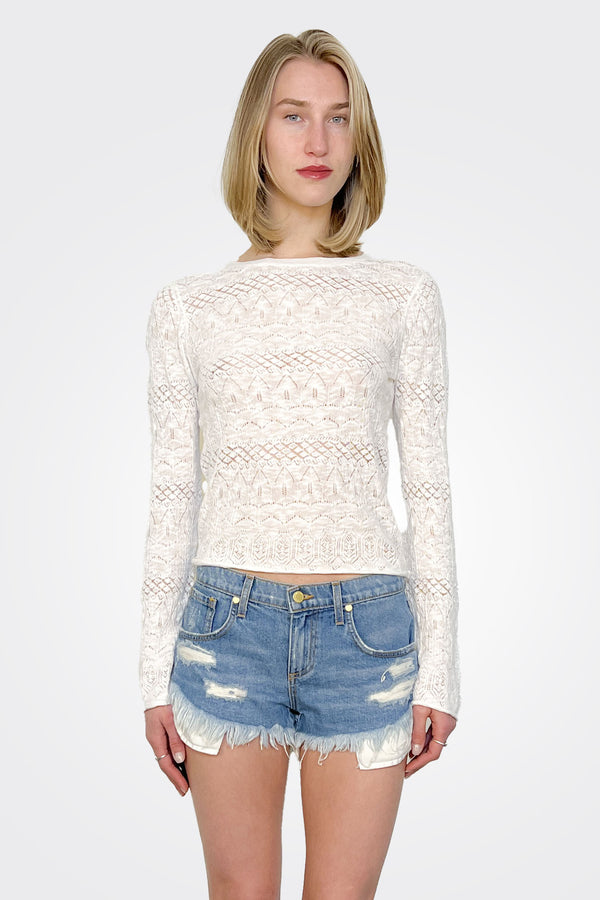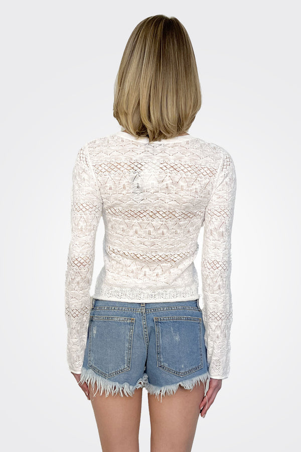 - Pointelle Long Sleeve Top – White: A classic piece that pairs effortlessly with any ensemble.