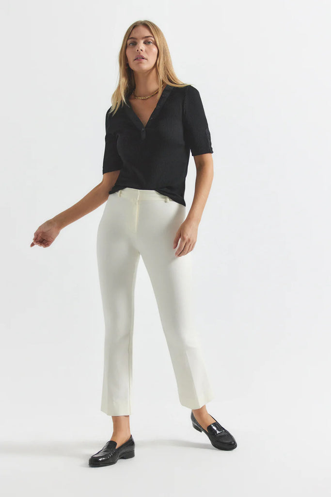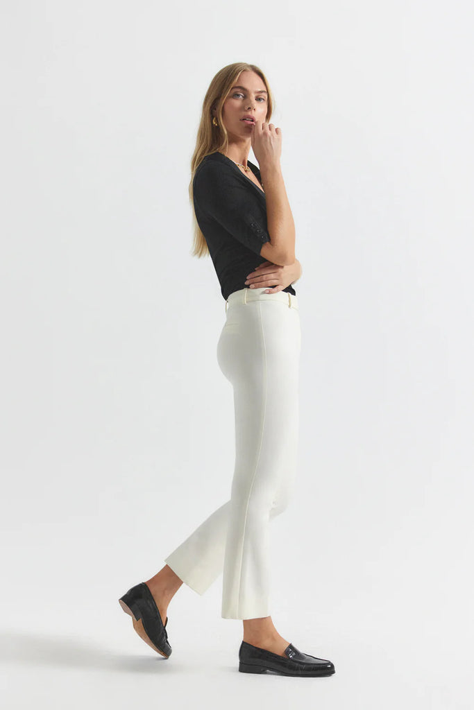 The Cropped Crosby Flare Trouser is a high-rise style with a slim fit from the waist through the thigh that flares below the knee and stops above the ankle. Based off our cult-favorite Robertson flared twill trouser. This pant features an ultra clean upper with a hidden zip fly plus hook-and-bar closure with back welt pockets. The press crease detail gives it a tailored finish. crafted in our bi-stretch crosby twill. Crafted with our bi-stretch crosby twill for extra comfort.