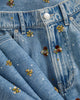 essential wide-leg jean, reimagined with embellishments. The Kasey is expertly crafted from our signature Dream Denim—our impossibly soft, most comfortable denim yet. A mid-rise waist and full-length leg create a flattering, elongating silhouette, while beaded floral accents and sequins down the front panels add a feminine touch. Style this high-shine blue jean with a sleek top and heels for your next night out.