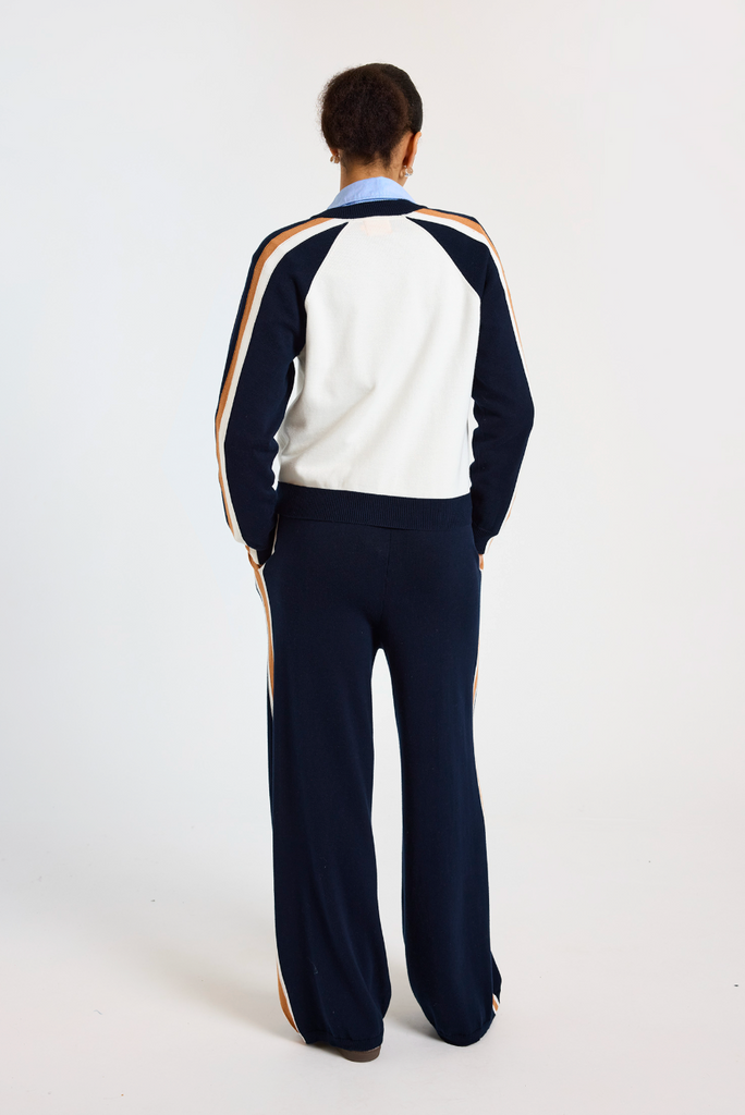 Valerie Stripe Wide Leg Pant - Navy Camel Ivory