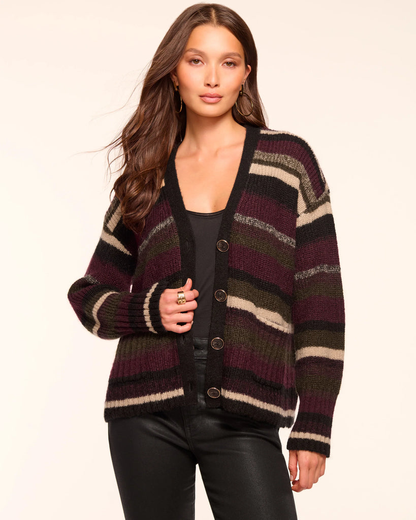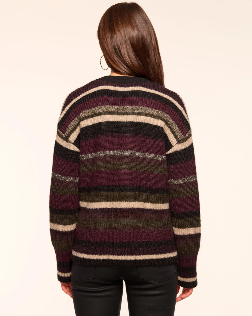 Caroline Striped Cardigan Sweater - Dark Olive Stripe