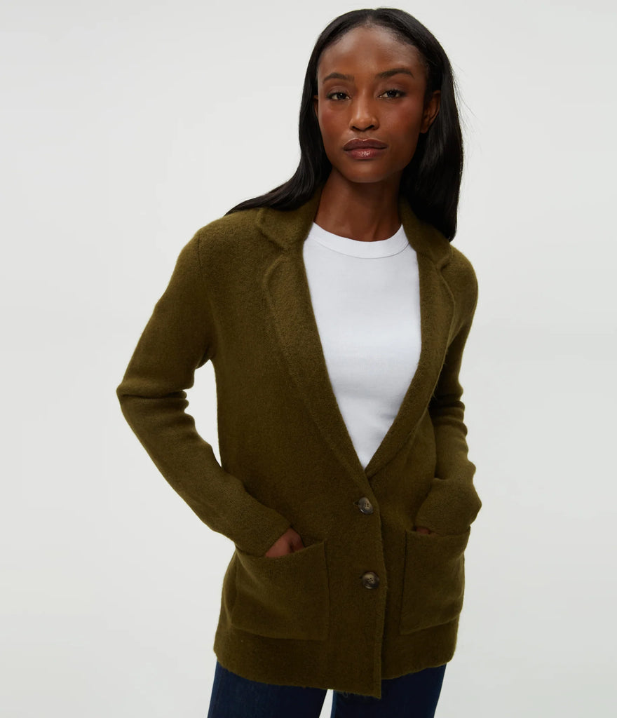A cool-weather must have, Diana is a compact knit blazer with patch pockets and a notched collar.