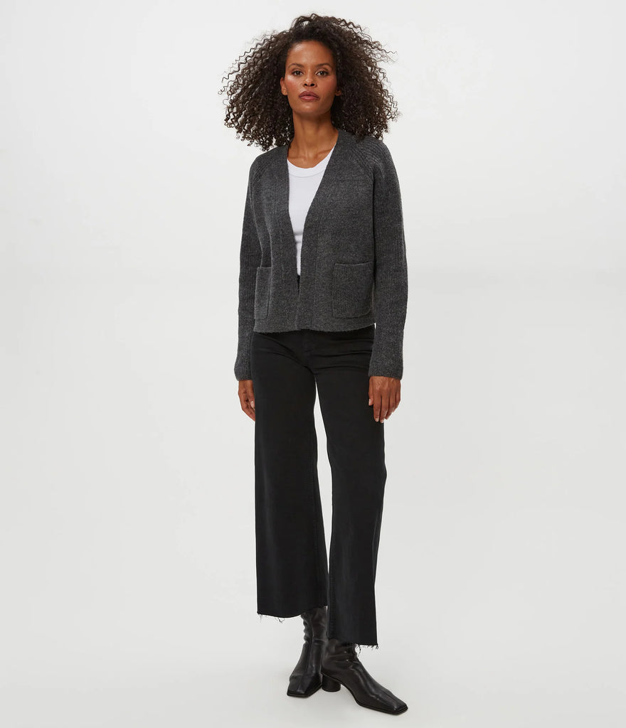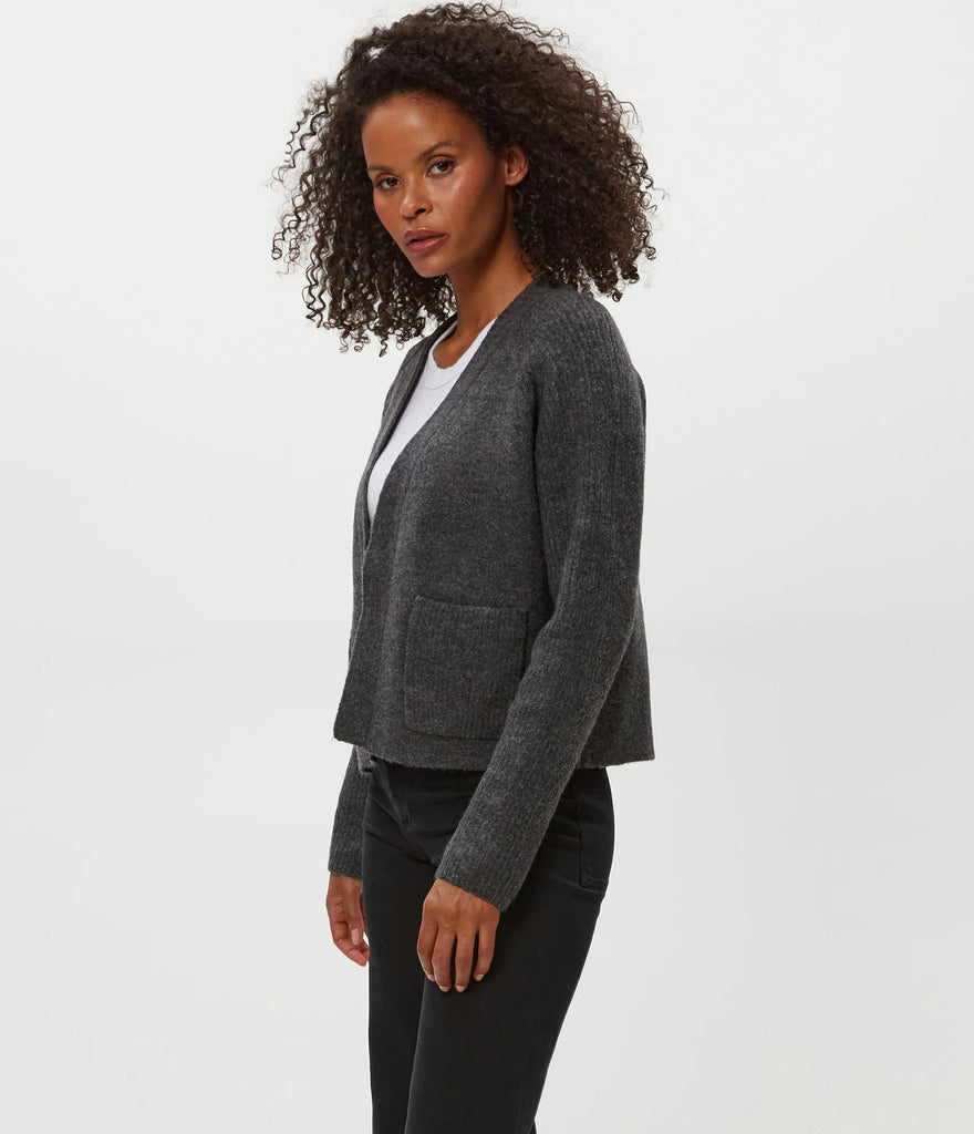 Warm up to a welcomed twist on the classic cardigan. Designed from our cozy knit fabric, this cardigan features an open front and hits at the waistband. With front patch pockets and a relaxed fit, this is an absolute for your chilly weather wardrobe.