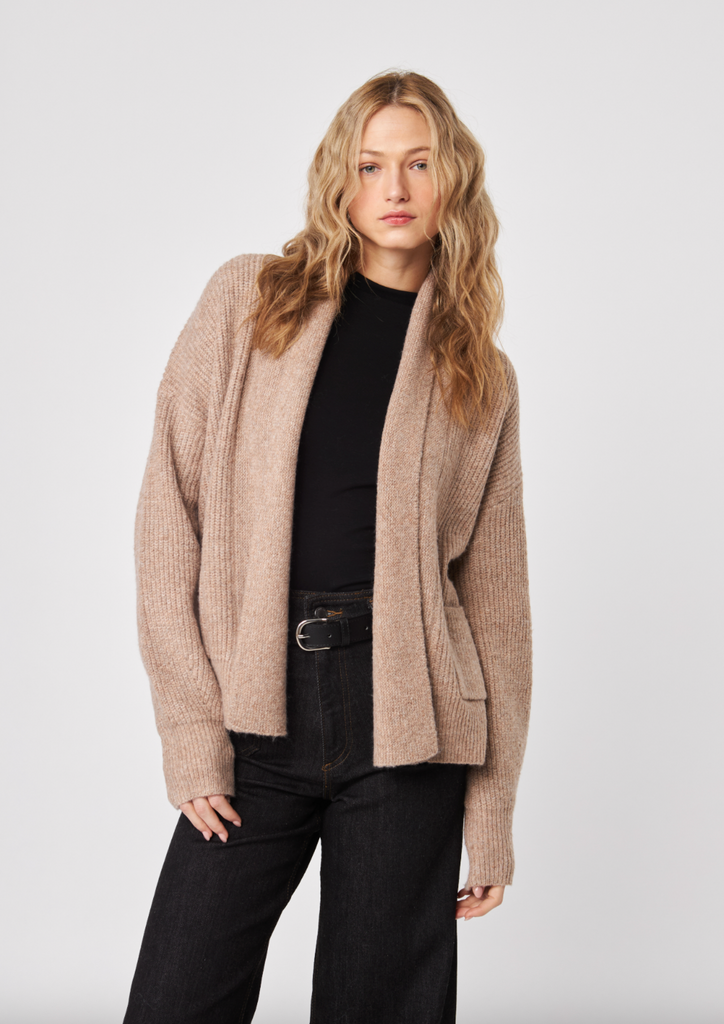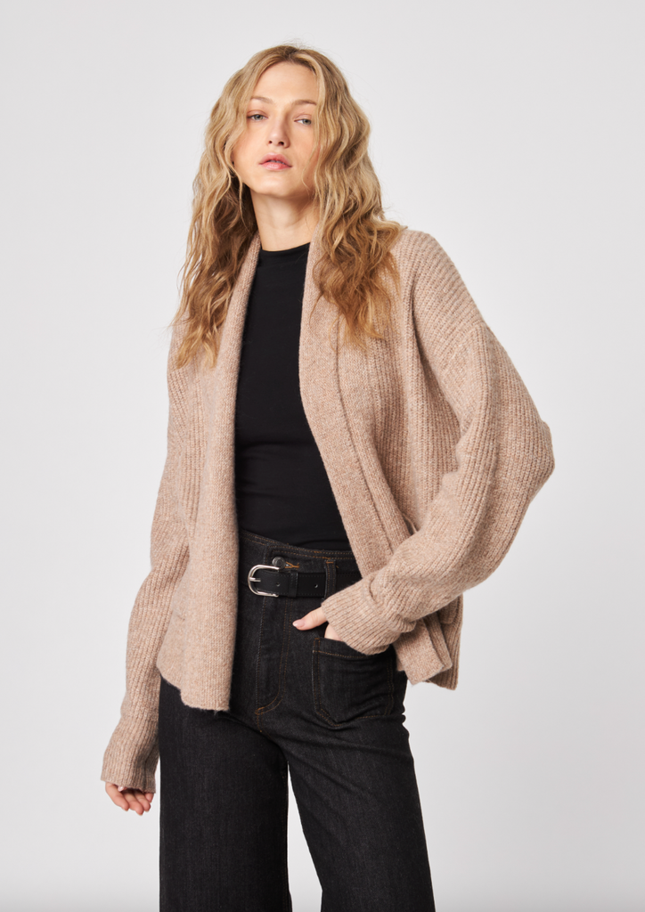 The Noah Cardigan from John and Jenn offers an effortless open drape, ideal for layering this fall. It combines a refined look with a casual vibe, making it a versatile addition to your wardrobe.