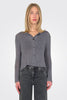 A modern staple with a feminine twist. This super cropped cardigan features rolled edge neckline, front button closures, clean edges, and subtle side slits for added movement.