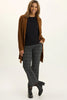 With striped trim down the arms, classic side pockets, and a plush lapel, this button-up longline cardigan is anything but your grandpa's sweater!