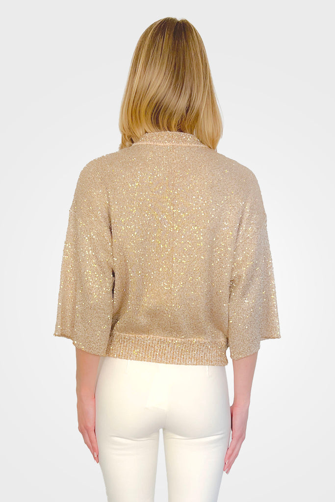 Short Sleeve Sequins Knit Cardigan - Beige