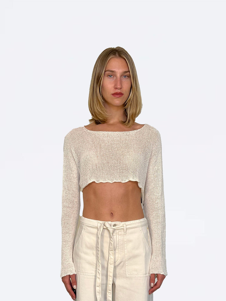 The ultimate go-to sweater, expertly crafted to provide the perfect combination of warmth and style. Its classic design and soft fabric make it a must-have addition to your wardrobe. A chic cropped piece perfect for travel.