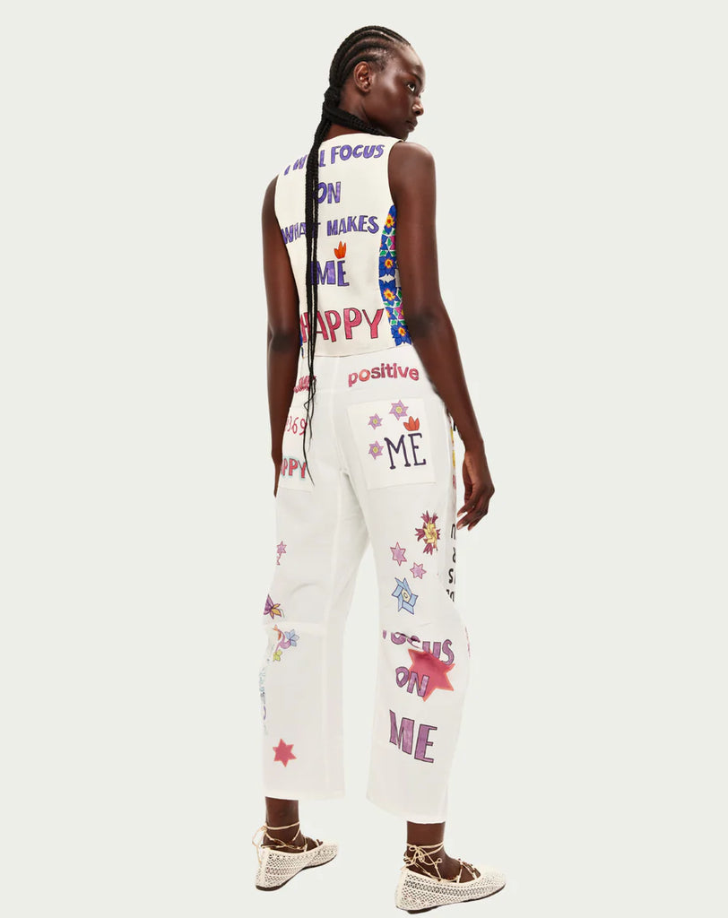 This cropped vest layers perfectly over tanks or pairs solo for festival style. The deconstructed design radiates optimism and authentic self-expression.