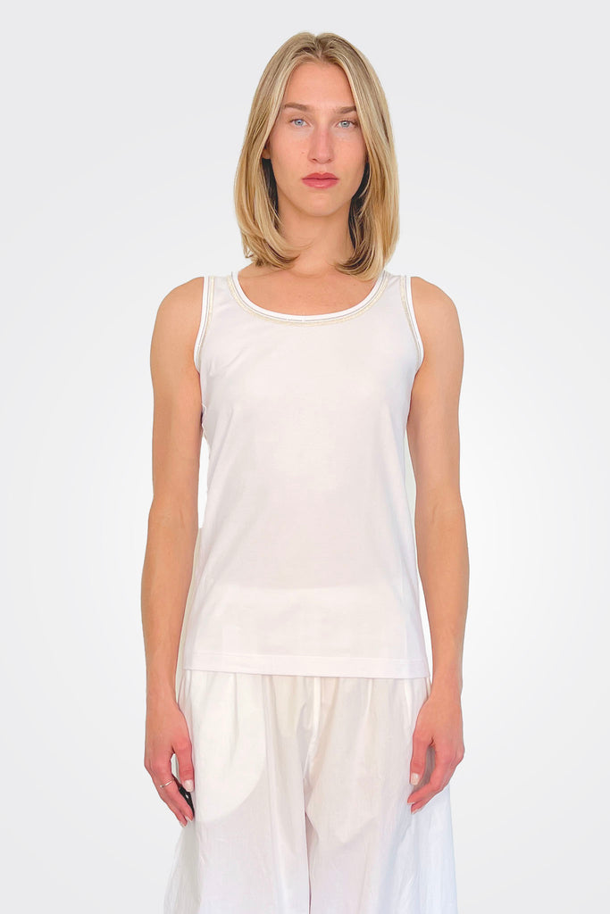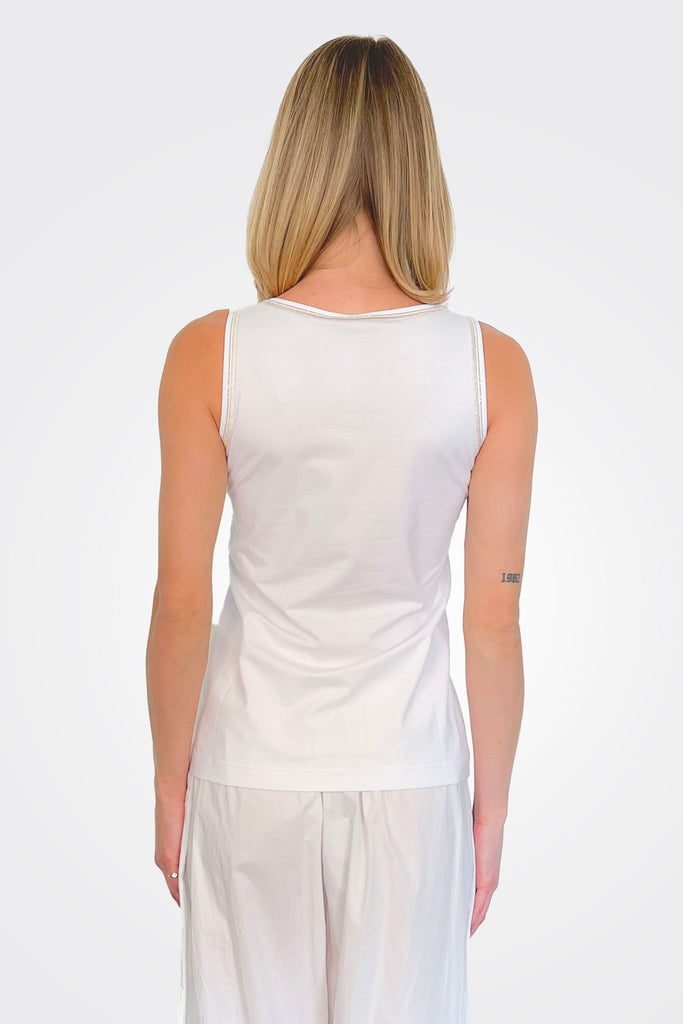 Sleeveless cotton shirt with beaded and detail neckline and arms