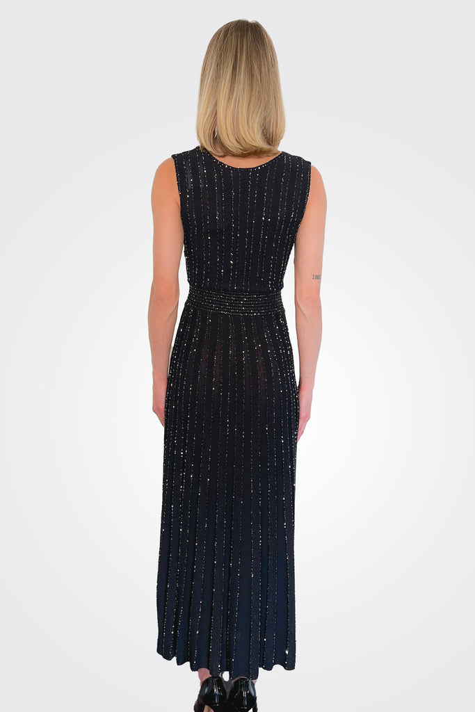 Sequin Stripe V Neck Dress - Nero