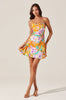 Cerinthe Satin Floral Mini Dress - Orange Multi