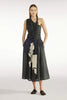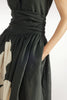MIDI DRESS IN 100% PRINTED LINEN, ONE-SHOULDER, SLEEVELESS, RUCHED WAISTBAND, Flared SKIRT AT THE BOTTOM, ZIP ON THE SIDE, POCKETS INSERTED ALONG THE SIDES.