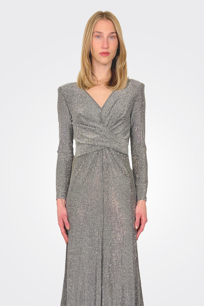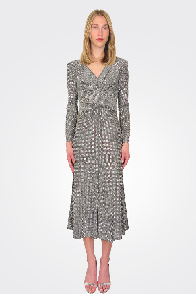 Long sleeve midi dress in stretch fabric with rhinestones.