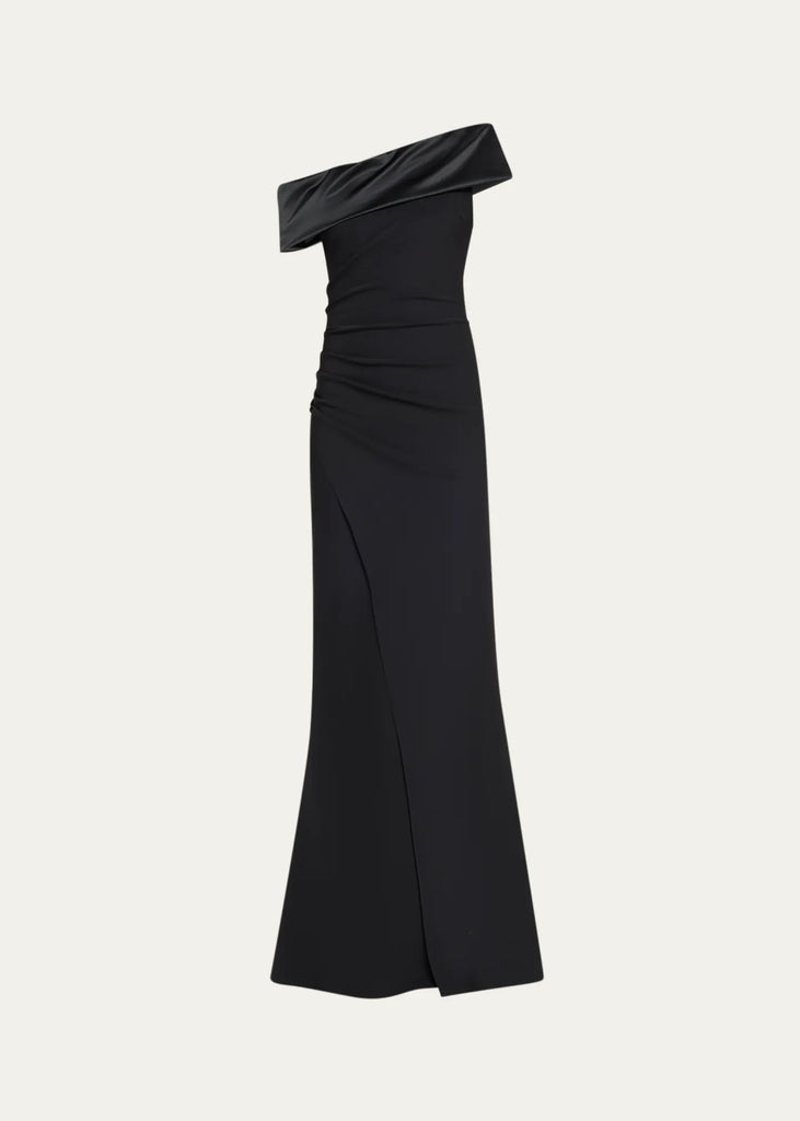 Chiara Boni La Petite Robe "Koppany" jersey gown with ruched waist and satin sash