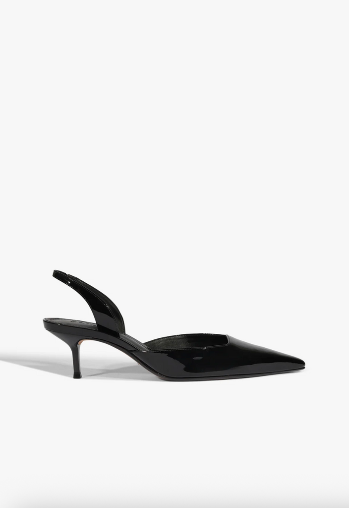 The Paola mid-pump mixes a vintage attitude with a modern edge. A bold cutout and fierce pointed-toe redefine what a classic slingback can do. The mid-heel is subtle, but the look is anything but basic. Rock it with cropped jeans, a button-down, or something unexpected. Either way, this pair leads the conversation.