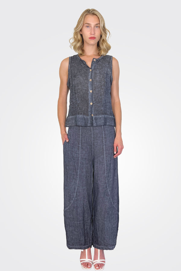 - Linen Asym Dress – Indigo Wash: A unique asymmetrical design that adds a touch of contemporary flair to your wardrobe.