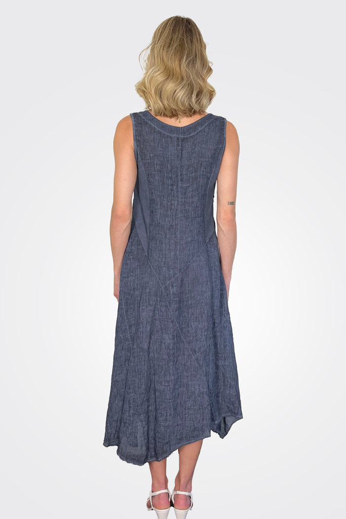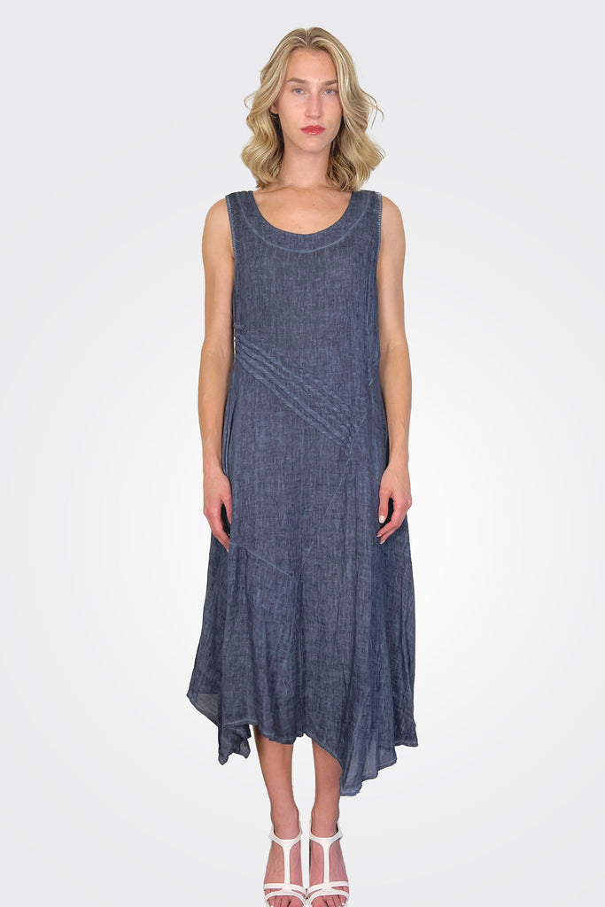 Inizio’s Linen Dress flaunts a great style from Italian linen dressmaker, Inizio. Asym detail across bodice