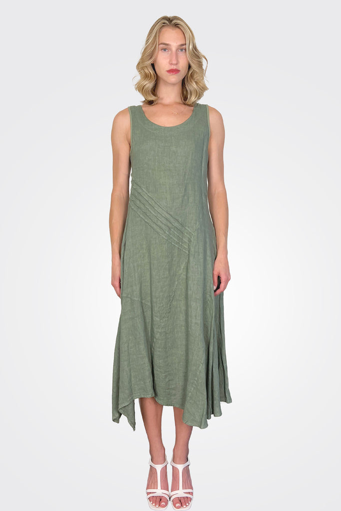 Linen Asym Dress - Jungle