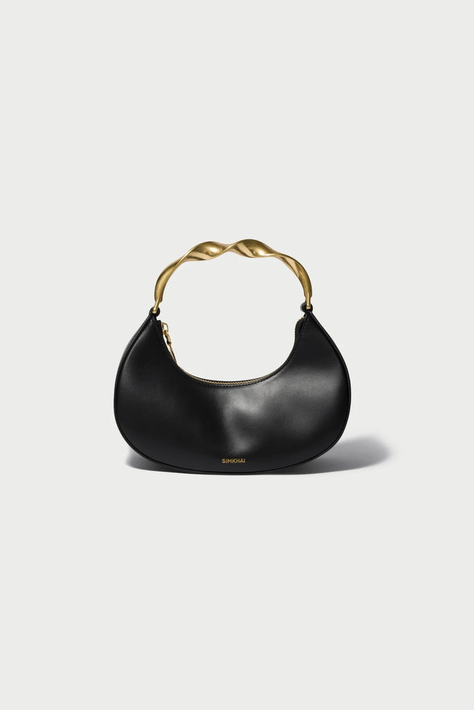 The Nixi Hobo Bag in Black. Showcasing a twisted handle atop a seamless, rounded silhouette, this handbag marries art with utility, creating an accessory that complements both casual and sophisticated styles.