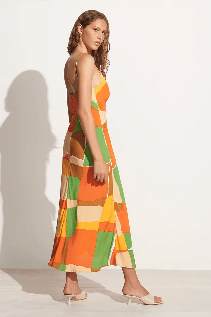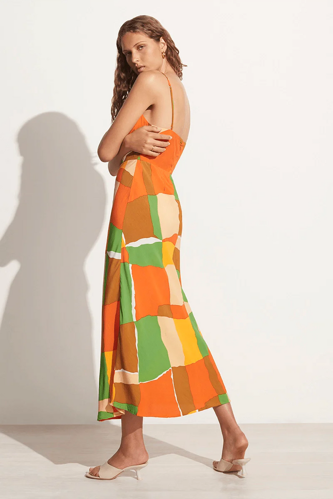 Discover easy summer dressing and statement abstract prints in the Tempio Midi Dress. Made from our lightweight and responsibly sourced rayon crepe, this bias cut midi offers an easy-to-wear relaxed silhouette, thin shoulder straps and a gathered bust finished with a drawstring detail. Patterned with a retro-inspired check print using artisanal hand-printing techniques featuring a colourburst of statement summer hues.