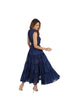 Sophie flocked multi tiered maxi dress, flocked floral shell, detachable slip lining, front button down closure with waist tie, maxi length, flared tiered skirt, dry clean only.