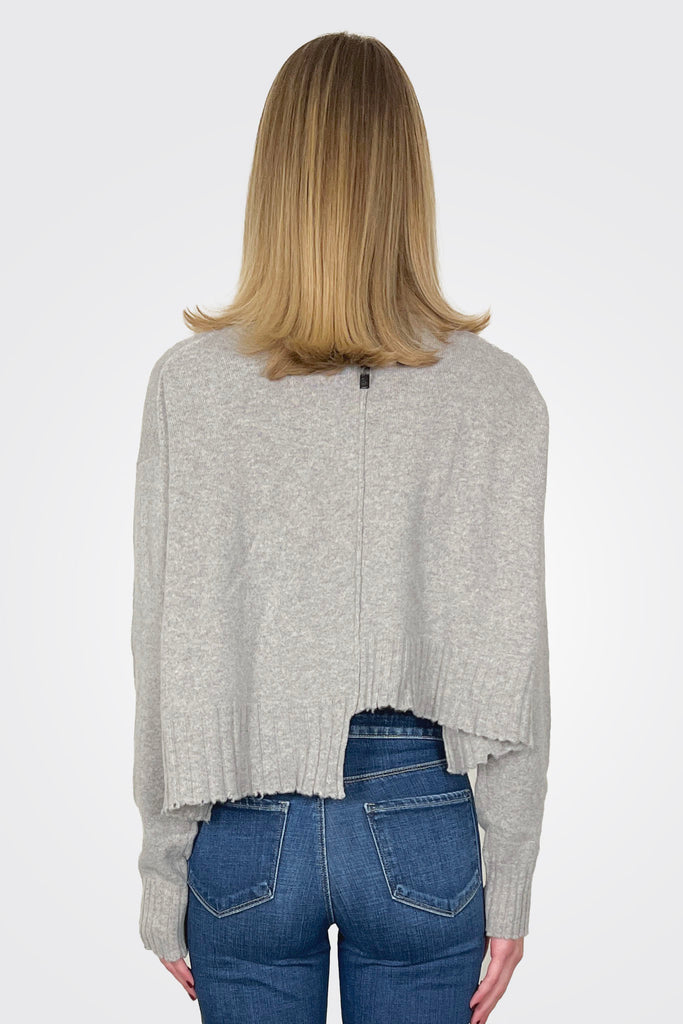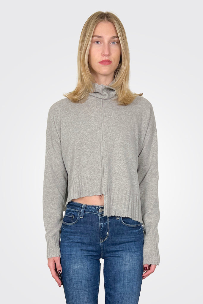 Crop Raw Edge Asym Mockneck Pullover - Grey
