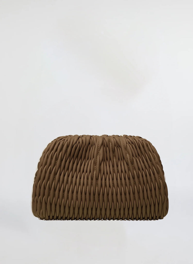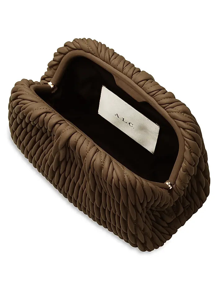 The Enzo Bag is quilted from our signature vegan leather in a deep hue. This compact, structured clutch features a clam shell hinge, magnetic closure, and a small inner pocket.