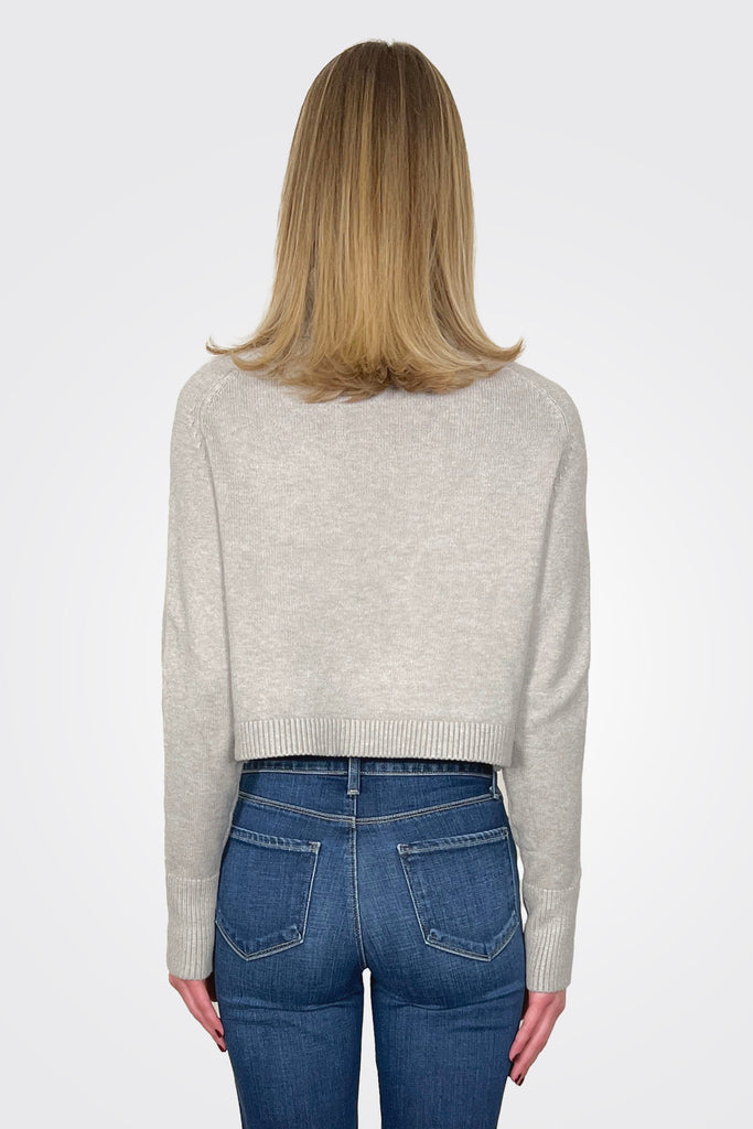 Viscose blend turtleneck sweater with long raglan sleeves. Crop length