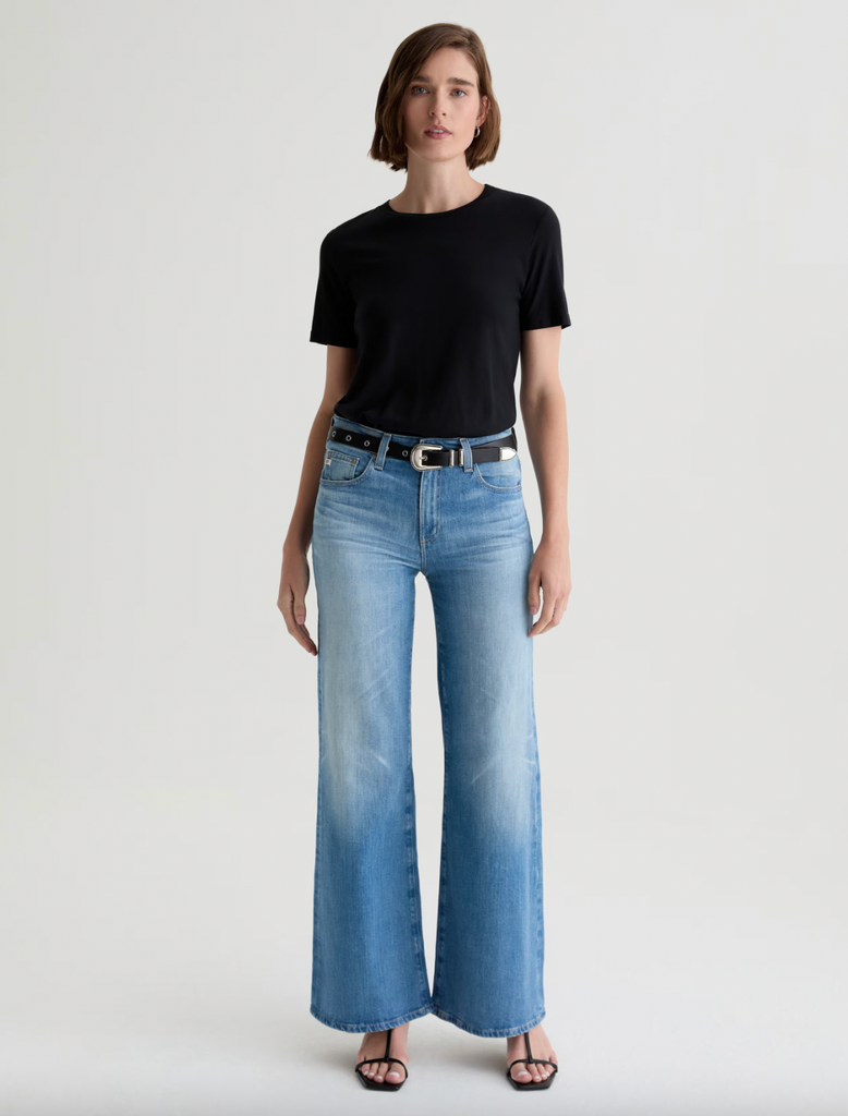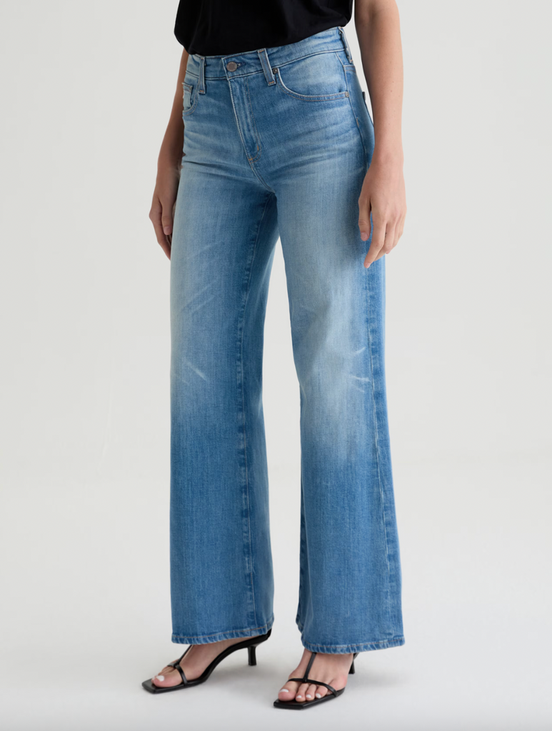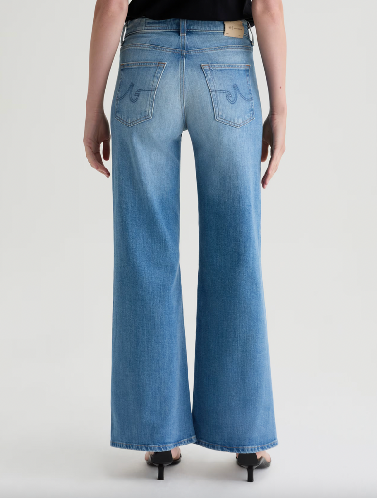 The Saige Wide Leg is a women’s jean with a mid-rise fit and relaxed silhouette. This AG-ed™ style is finished to replicate 18 years of natural wear, offering a broken-in look with effortless character. Crafted from premium denim sourced from Italy’s Candiani Mill.