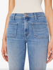 On a roll. This cult-favorite flare has a mid rise, zip fly, patch pockets, a 31-inch inseam and a clean hem. Cut from stretch denim, Poppin' Wheelies is a mid-blue with whiskering and fading at the knees.