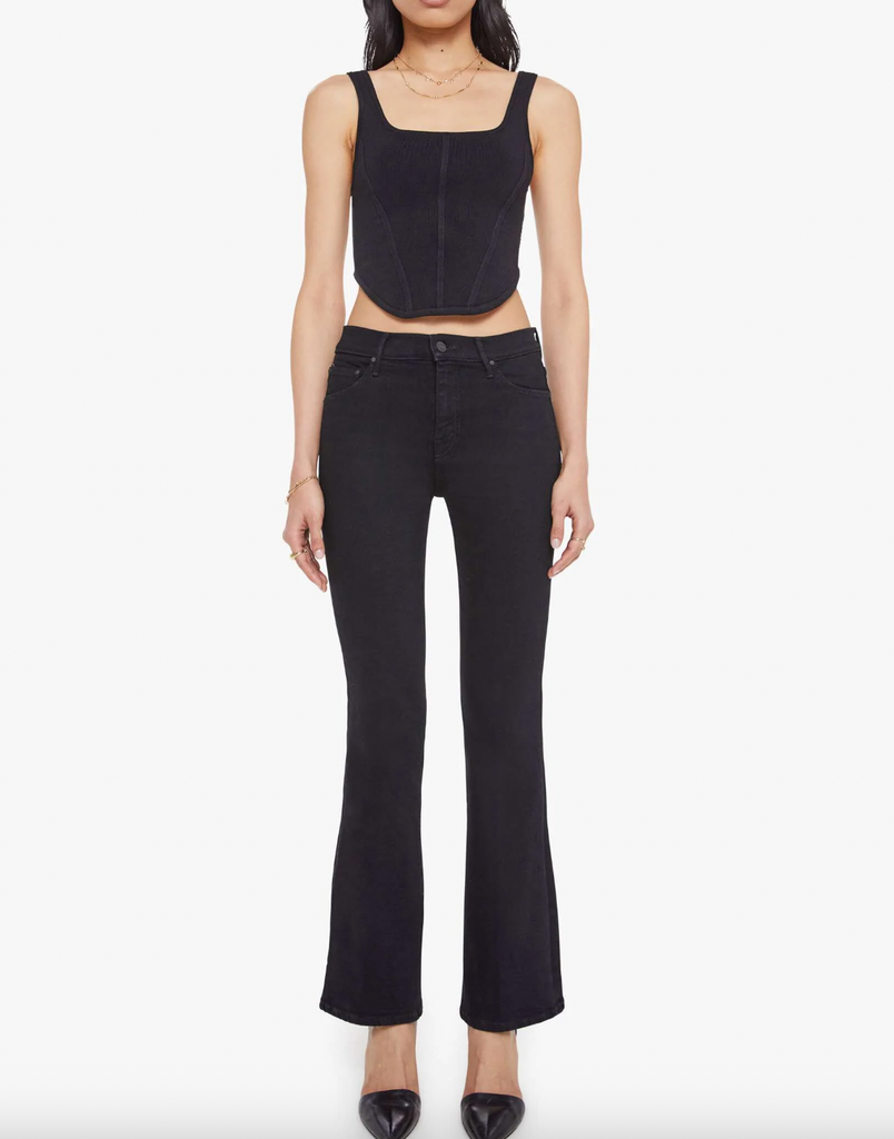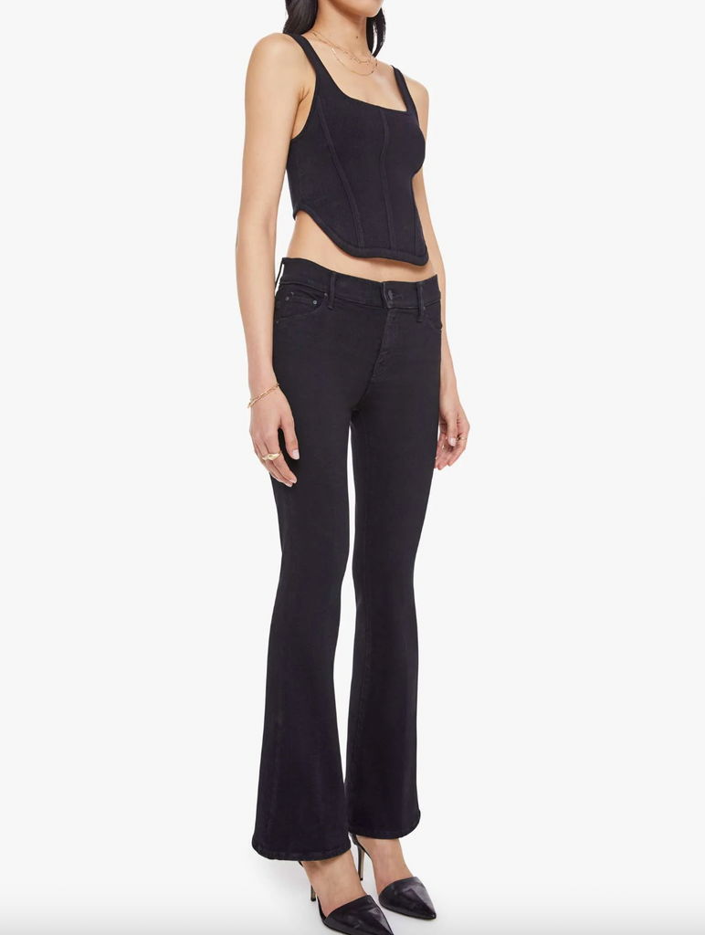 Sweet dreams. This cult-favorite flare jean has a mid rise with a 31-inch inseam and a clean hem. Cut from denim with a touch of stretch, Nighty Night is a dark black with tonal hardware.