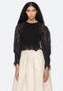 The Vania lace combo sweater blends modern elegance with vintage-charm, featuring a cable knit body framed by sheer lace sleeves. The cropped silhouette lends a contemporary finish to this polished style.