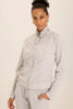Maximum performance meets the Momentum Jacket in flexible Whisper 4-Way Stretch fabric, designed for sweat-resistant movement and easy comfort. Momentum features allover ruching on the front, an elastic cinched hemline, and a belted buckle detail at the collar for some added chic. Wear for movement or style with a casual bottom for sartorial excellence! Activewear never looks so stylish!