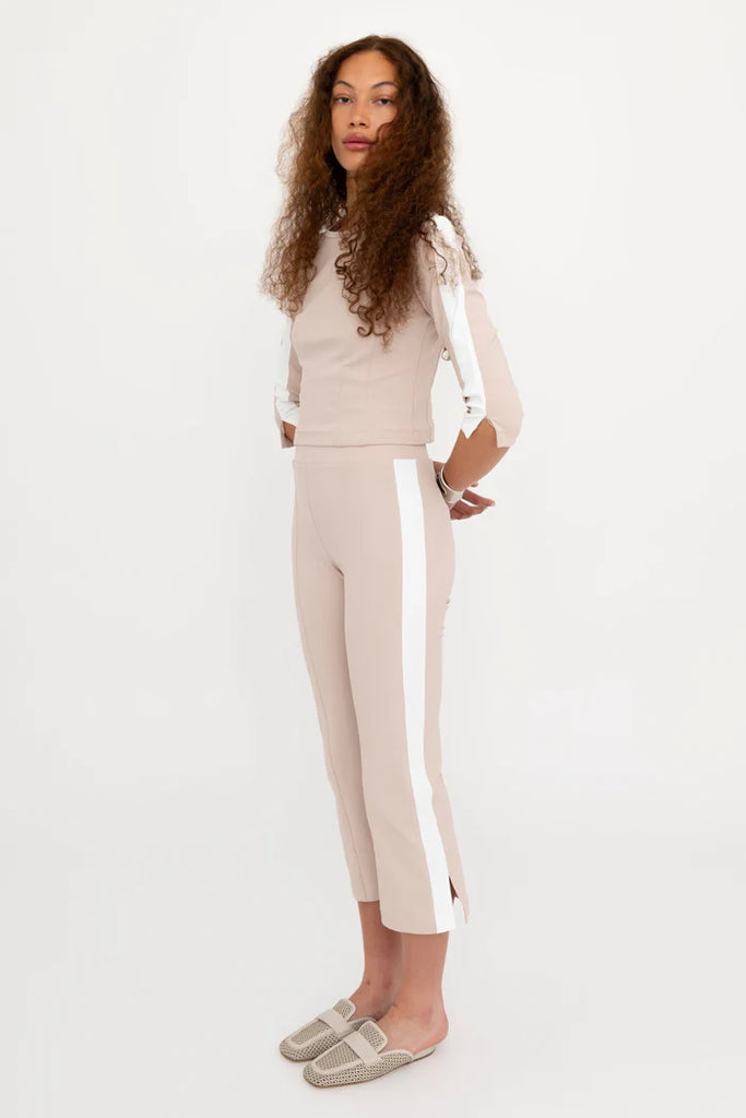 Sporty yet elegant, these pants are a fresh new take on our beloved cropped silhouette. Featuring a flattering side stripe, they have a slight flare and are cropped at the perfect length.