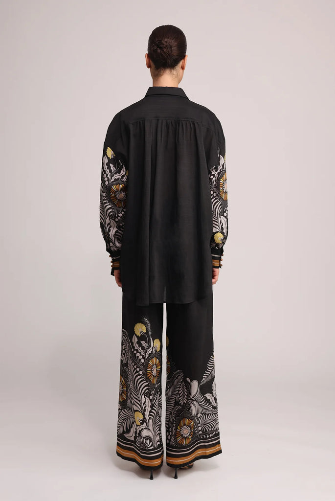 Casual sunflower print wide leg pants by Sabina Musayev.