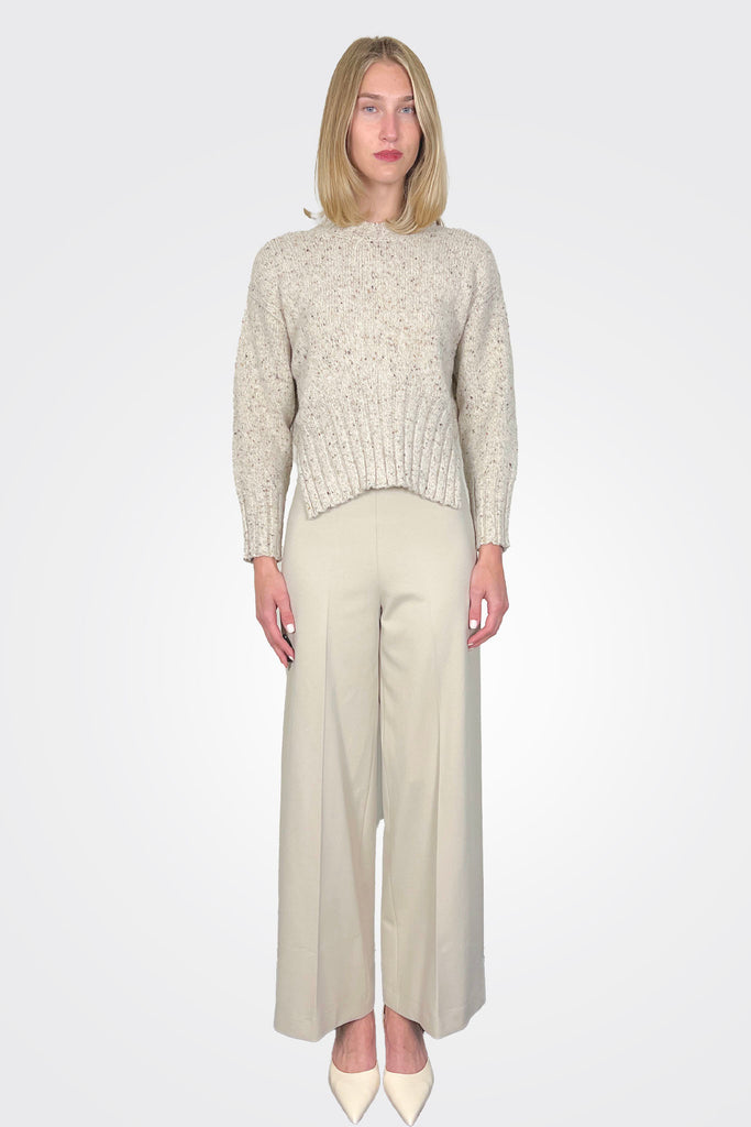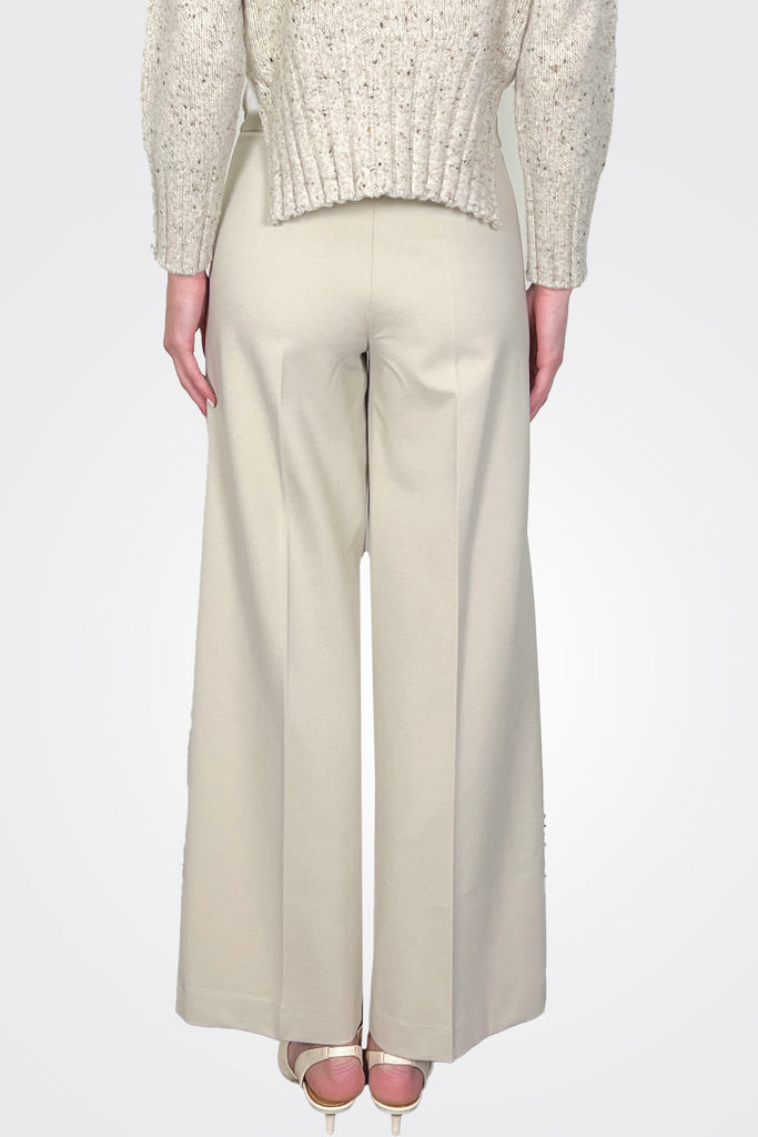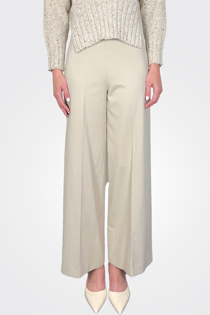 PALAZZO TROUSERS IN MILAN STITCH WITH A HIGH WAIST, WIDE FIT AND CONCEALED FRONT CLOSURE. ANKLE LENGTH.