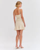 This mini dress is made of stretch jacquard features a V neckline with a fitted bodice into a flare hemline. Tie belt along the waist and adjustable straps. Concealed back zipper closure.