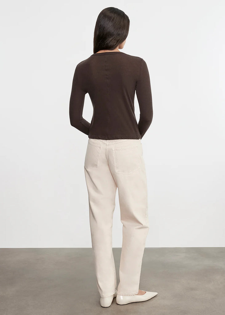 The New Classic is an update to best selling Easy Cuffed Crew with thoughtful minimal details. Slightly shorter in length with slimmer binding at the neck and cuffs. Features a close but relaxed fit and signature thumbholes.
