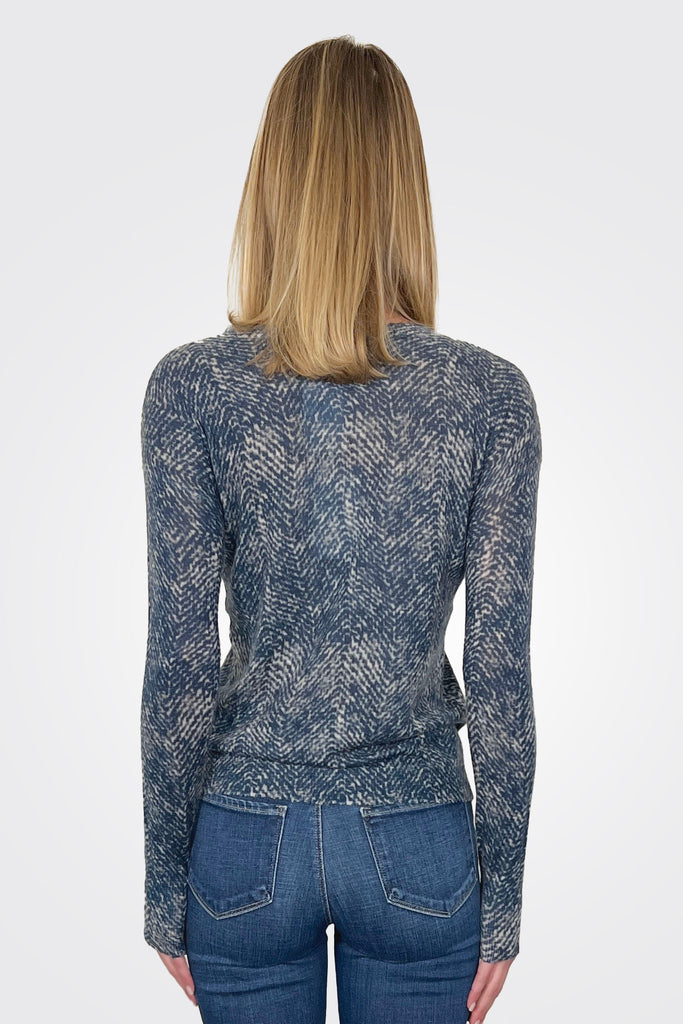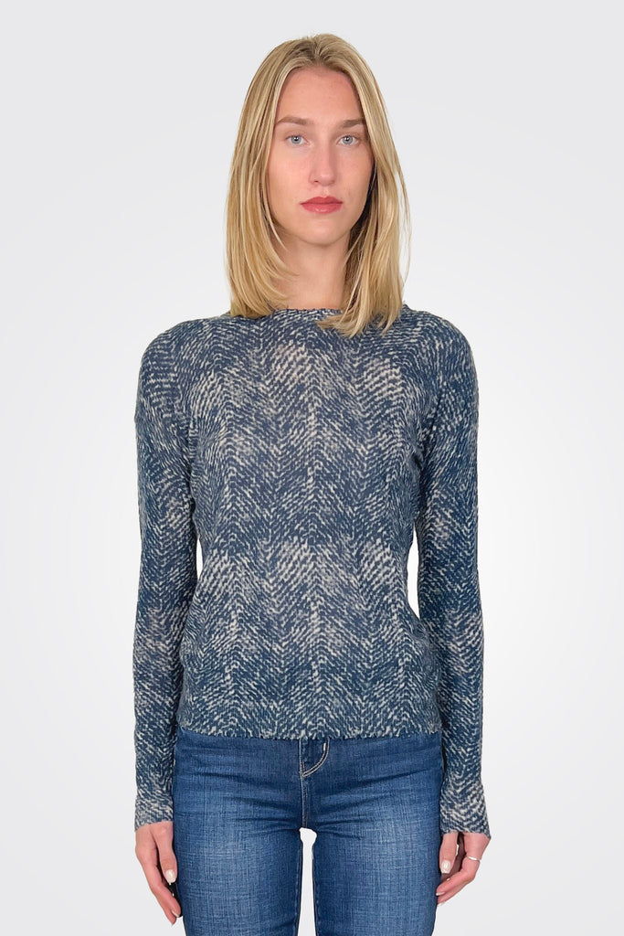 Herringbone Print Raw Edge Crew - Raw Denim Combo
