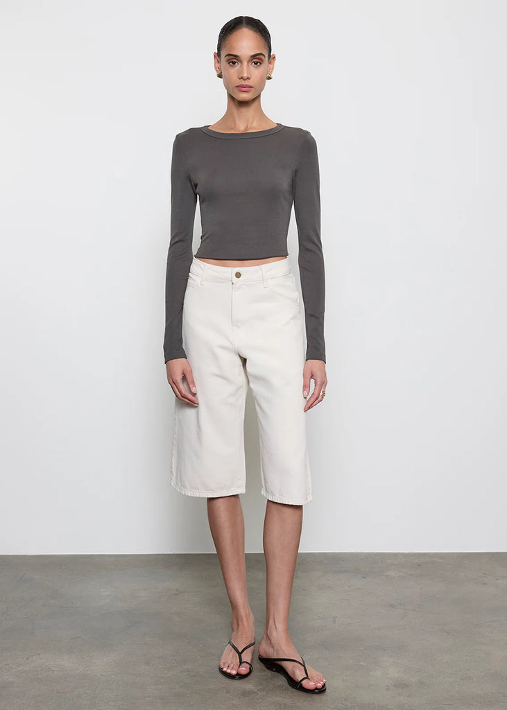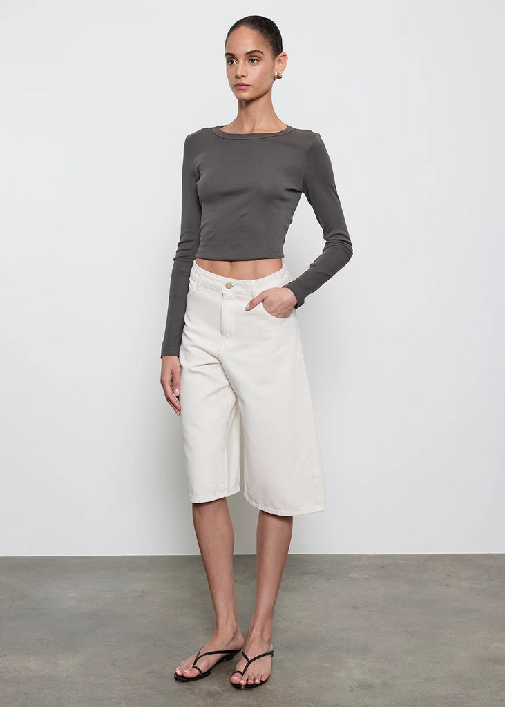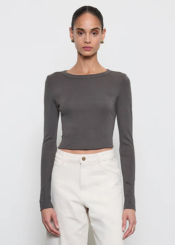 Supima Baby Rib L/S Cropped Top - Slate