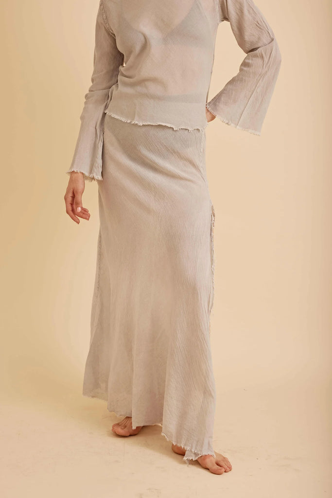 • 100% Cotton• Machine wash• Semi-transparent• Side slit• Raw hem• Elastic waist band• Runs true to size