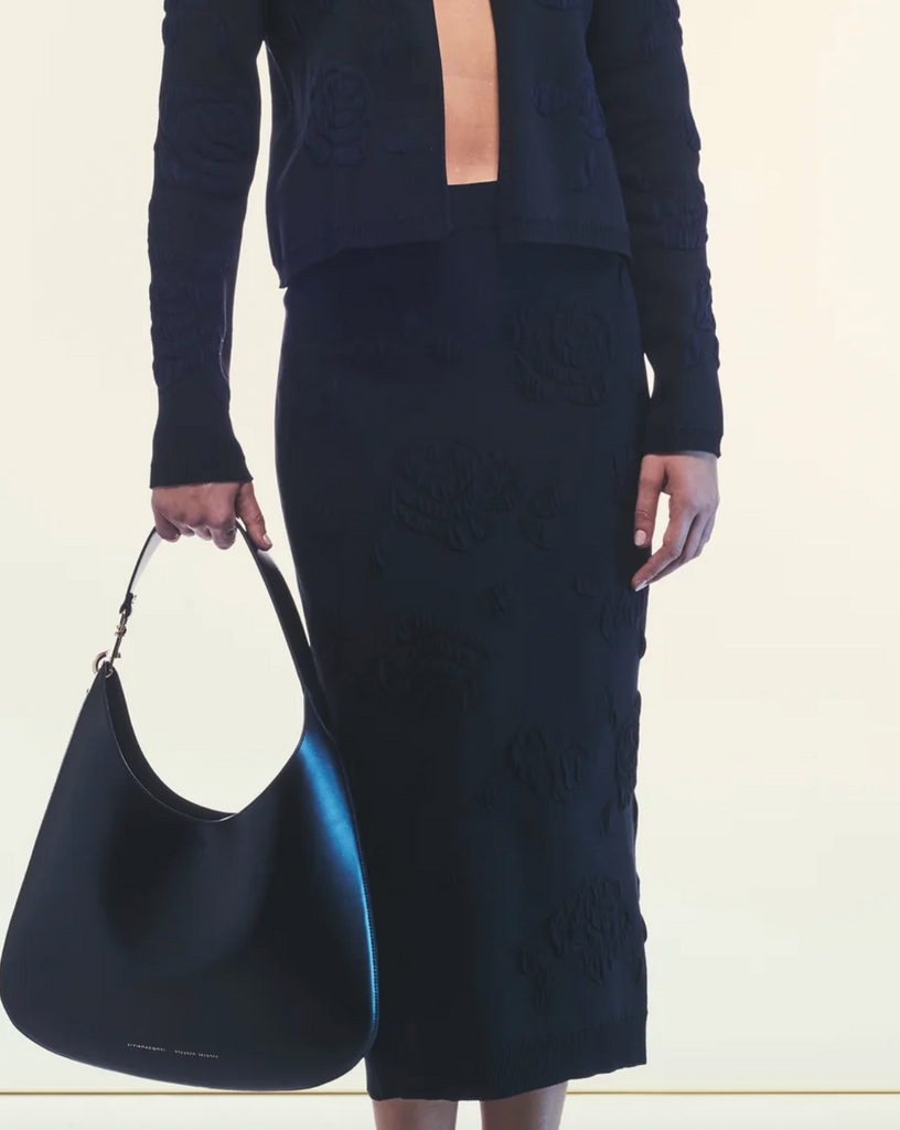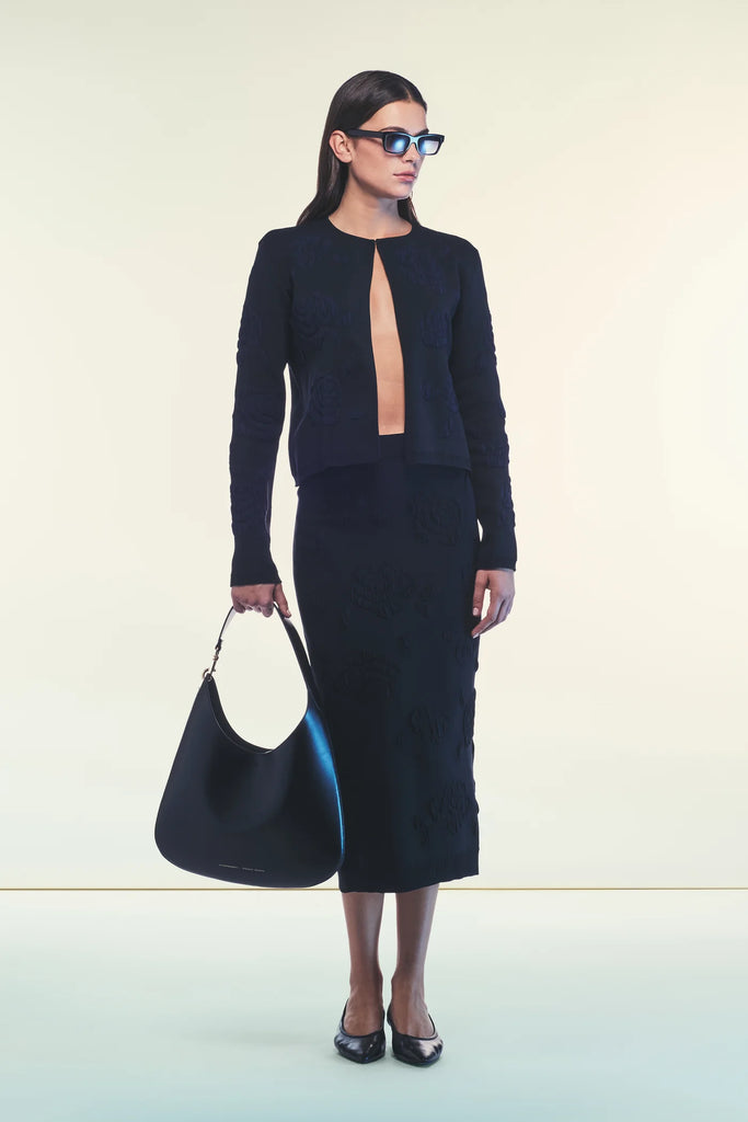 TECHNICAL NYLON SKIRT WITH TONE-ON-TONE JACQUARD ROSE PATTERN.