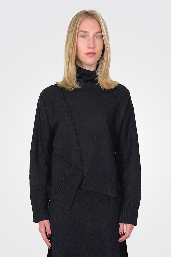 Asymmetric front seam with folded hem detail