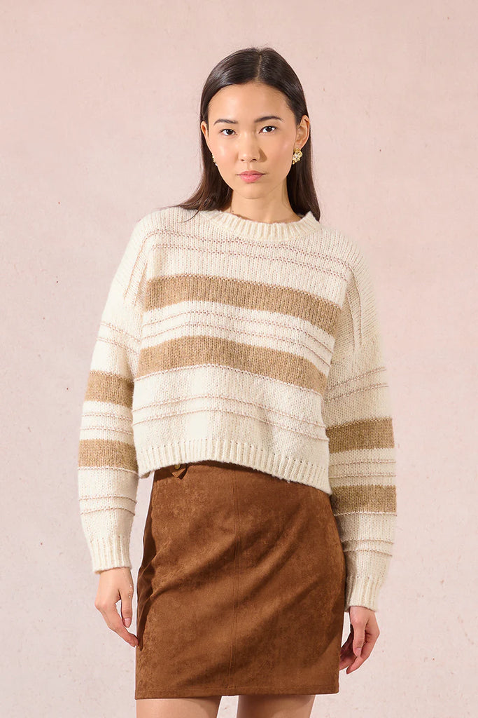 -Short striped knit sweater-Long sleeves-Round neckline close to the neck- Embossed stripes-Straight fit-Ribbed trims-Length from the shoulder 18.5 inch for a size S